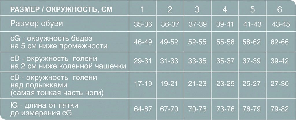 It is extremely important to choose the right size (keep in mind that the size table is often different for different companies). Compression tights almost do not stretch. Therefore, at home, accurately measure your circumference of the leg, waist, hips, and the length of the leg (from foot to knee and from foot to groin).