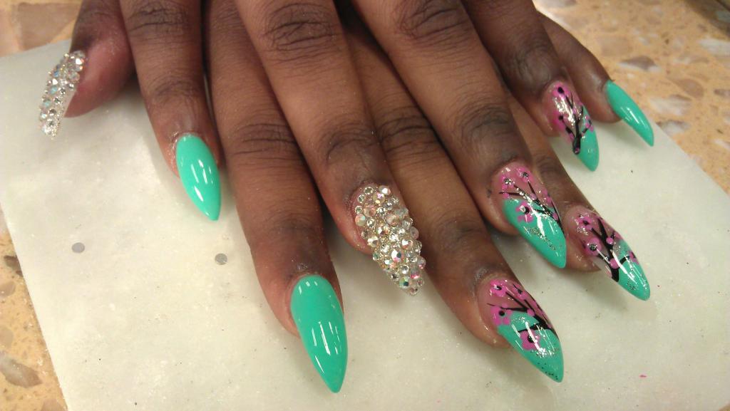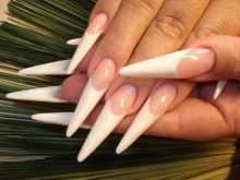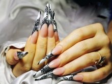 Of course, nail-stilettos (“stilletto”, “cat's claws”) or the beveled shape of “lipstick” or “glasses” will not fit the minimum length of the plates. They look spectacular only with good length and most often on extended surfaces. Small sharp nails look ridiculous and ridiculous.