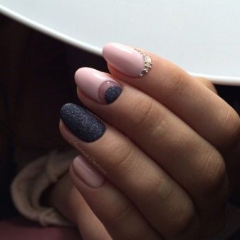 Round shape on short nails is not too good for geometric patterns and large patterns. Rhinestones better to choose small and in a minimum amount. French will not appear on them in all its glory. But all the pastel shades and matte varnishes will look quite noble and decent.