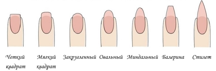For girls with thin “musical” fingers, this particular form is more suitable. In fact, a rectangular version is cut out of the square, which is attached to the rounded edges. This is a great solution for nails with a small narrow bed.