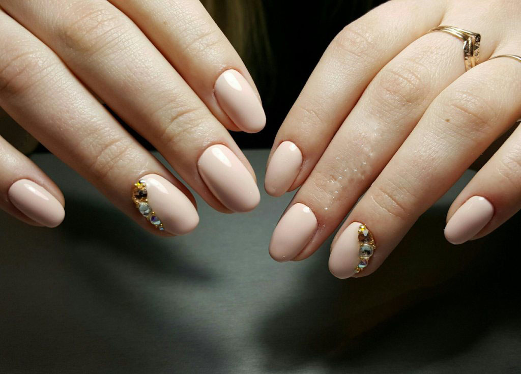 The oval looks perfect on delicate fingers with thin brushes and short nails. To give the nails of this form they need to file, copying the shape of the base, but in a mirror image. This simple shape is ideal for short plates. It slightly protrudes above the nail bed and is in harmony with its natural shape. This form has many positive aspects.