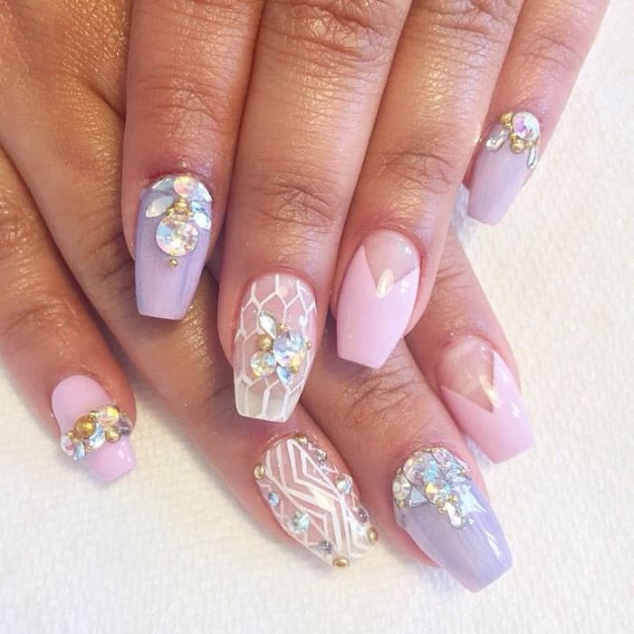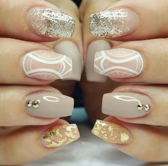 Geometry with shiny ribbons of foil, stamping, lace, newspaper design, wedding theme - everything looks cool and appropriate, provided that the manicure itself is done carefully and the nails have the same length and clear shape.