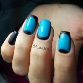 An interesting technique that allows you to combine several colors in different versions. The gradient can be both vertical and horizontal. The transition of one color to another can be subtle or more pronounced. Depending on what color palette is selected.But when performing this technique requires certain skills. More often used is the option when the gradient is present on only one or two nails, and the rest are covered with one of the colors present on these nails or, on the contrary, in a completely different shade.