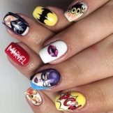 Youth manicure is rather a multi-colored, bright, creating a feeling of celebration and the desire to enjoy every day. The combination of bright pictures, different colors, inscriptions is quite understandable. After all, a manicure is also one of the ways to express your attitude.