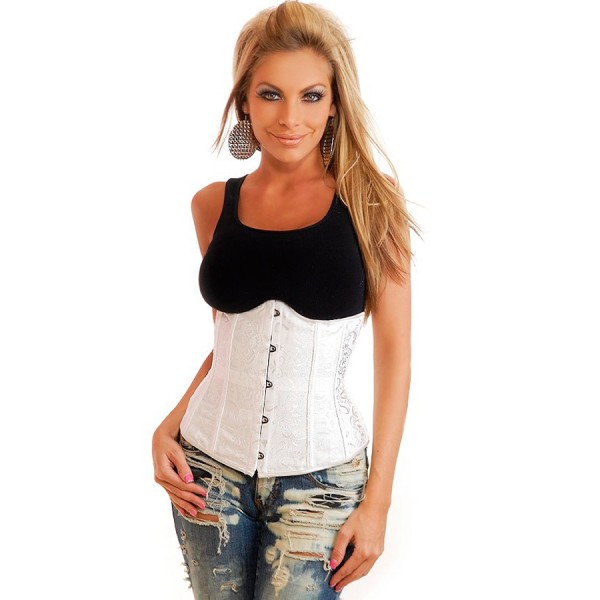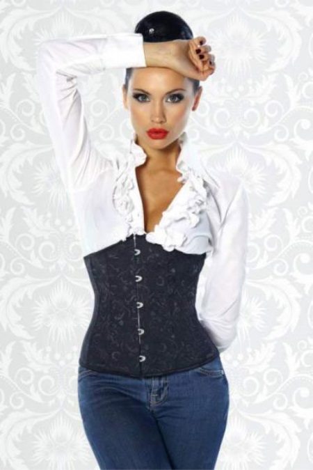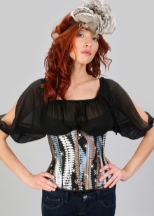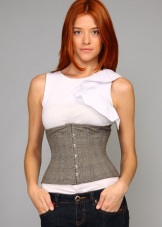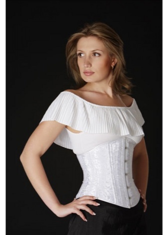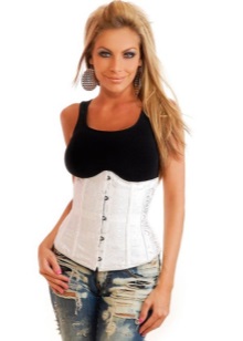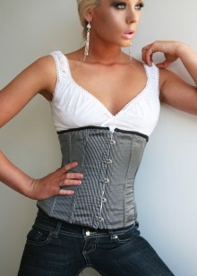 - The same corset is also suitable for creating an image that is a cross between classics and frank everyday life. A white shirt with a v-neck and ruffles at the edges and jeans in a classic shade combine with this product, creating a completely incredible outfit.