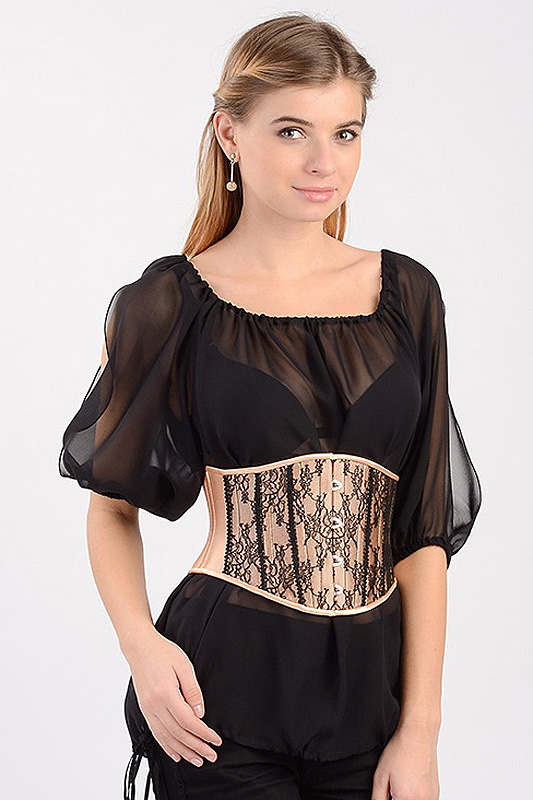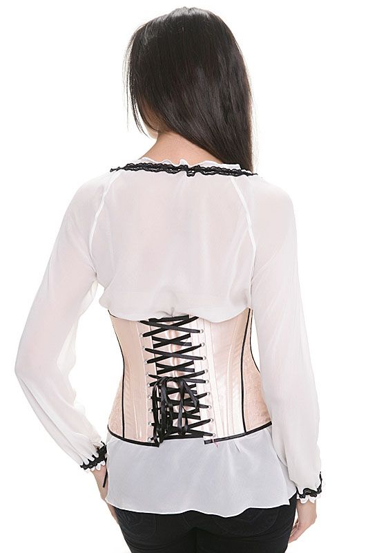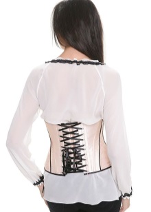 Many corsets are equipped with lacing on the back of it, some may have thin straps and cups for the chest, and some models do not touch the chest, thereby saving the breasts from pressure, which can even have a negative effect.
