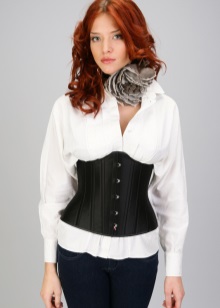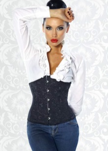 But a good example of how a corset can be used in everyday looks. A plain white shirt is transformed because of a black corset that highlights the waist and lifts the chest. In this way, you can even walk to work, if the dress code is not particularly hard and you will not feel sorry for men who will not be able to take their eyes off such beauty.