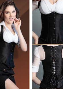 - Body corset, corset-bustier, corset-waistcoats - all this is a form of slimming underwear, in which there are elements of a corset. The corrective underwear industry is developing rapidly, so new types of clothing are constantly emerging, which helps women to hide figure flaws.