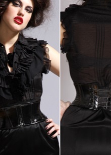 - Black corsets can be presented in the classic version or serve as erotic underwear. It all depends on the style. If you plan to wear a black corset under clothes, with a shirt, skirt or trousers, it is better to choose a simpler style. To create a sexy image that will be intended for the beloved man, then models with lace, ruffles and bright decor will be more relevant.