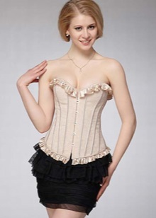 The corset is considered a belt, which can have a different width. The mission of the corset is to correct the parameters of the body and support the chest. Inside the corset are elastic plates that allow you to tightly clasp the abdomen and chest in the lower part. In the design of the corset, lacing is necessarily present, which can be supplemented with hook-and-loop fasteners or zippers. If the corset is pulled off, then its shape will be like a sand-glass.