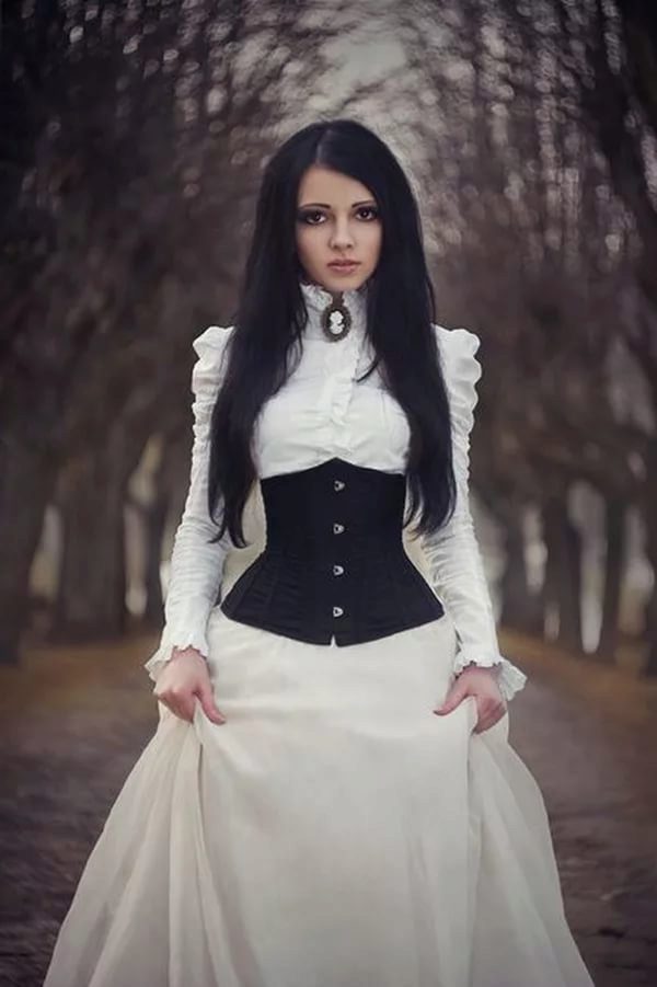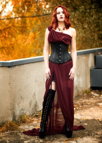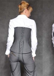 - The most popular Gothic models of corsets, which are independent clothing that does not require additions. The vast majority of Gothic corsets are created in dark colors.They must have lacing. Among the Gothic corsets stand out leather models, which are perfectly combined with the usual clothes (skirts, pants, jeans).