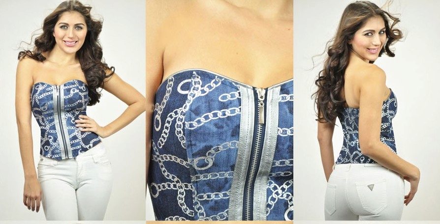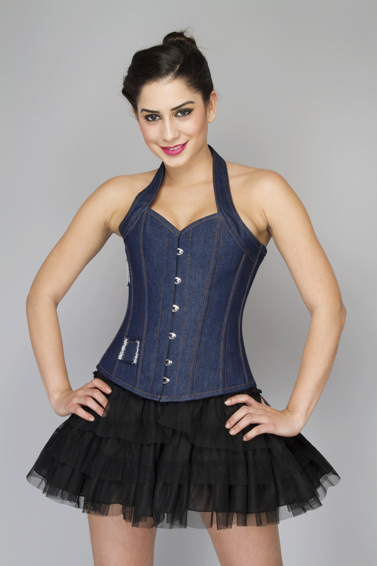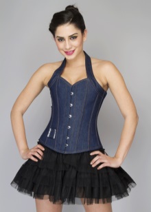 2. Denim corsets are usually considered as a daily option.. They are universal and practical, so on their basis you can create a large number of diverse images. On such corsets embroidery, rhinestones, beads and other decor will be appropriate, which will give the product brightness and make it expressive.