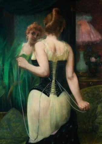The lacing of the first corsets was located solely on the back. It was excruciatingly painful to wear such items, they squeezed the chest very hard and held down movements. Women had to make great sacrifices in order to appear slimmer and more graceful.