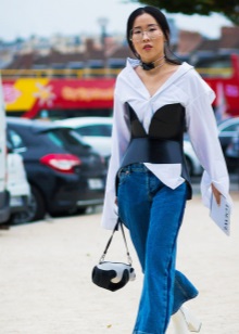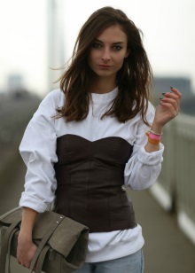 But, and for ordinary women who do not belong to any direction, a leather corset with laces will be perfectly combined with loose wide dresses. If you are not a lover of dresses, then choose the same cut loose shirt and complement the image of jeans.
