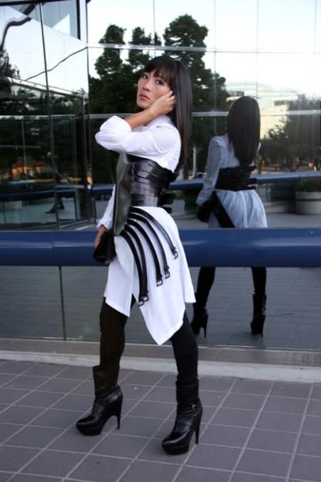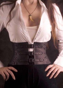 The model resembles a very wide belt with laces or zippers. Such a corset simply emphasizes the waistline, but not every girl can wear it. Such leather corsets decorated with buckles, rivets or color inserts are very popular.