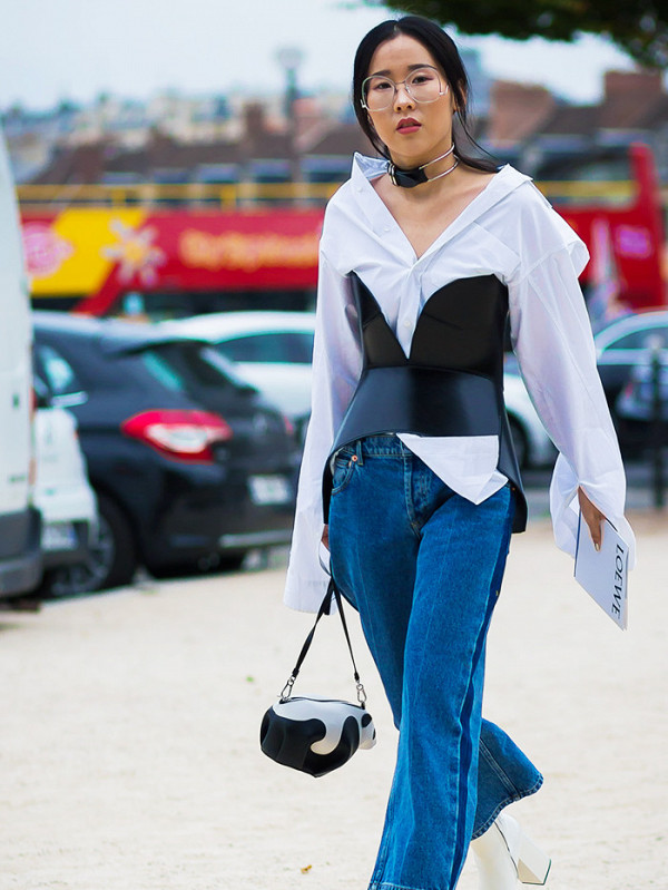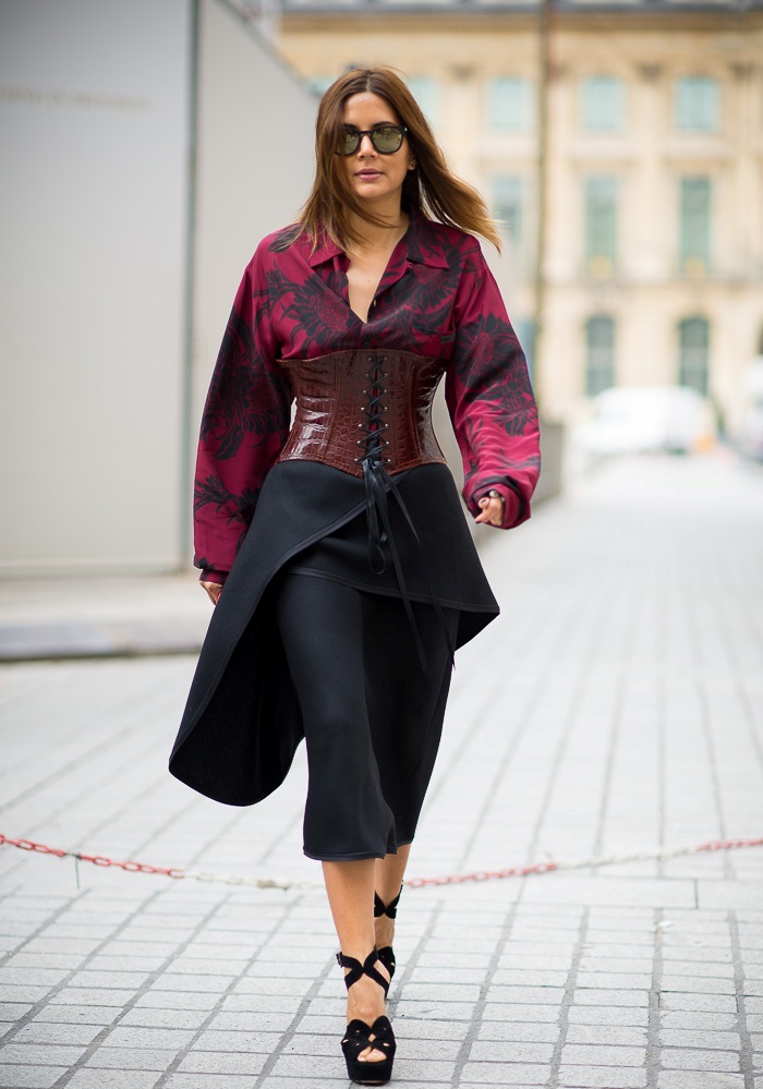 Leather corset fits easily into everyday images, combined with jeans and trousers, the belt of which will be covered with a corset or border on it. Leather corsets need to be embedded in the image very carefully and avoid cheap accessories so that the image does not look vulgar.
