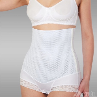 Combined corset is used before and after childbirth. It is reinforced with overlays and stones and is a two-sided belt with a wide and narrow part. The choice of such a corset will save and instead of two, buy one.