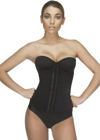 Waist corset performs the function of corrective underwear. It is designed so that the bottom layer consists of plates of hard plastic, and the top one is most often a belt of elastic material that is fastened with velcro or hooks.