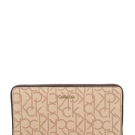 Multifunctional beige Calvin Klein wallet is made of artificial leather and textiles. It may seem that it is not quite a standard size, but it is not. This model has six card slots, one banknote compartment, four compartments for documents, a zipper pocket on the outside. The purse is buttoned on the button. In stores you can buy such an accessory in black and beige colors.