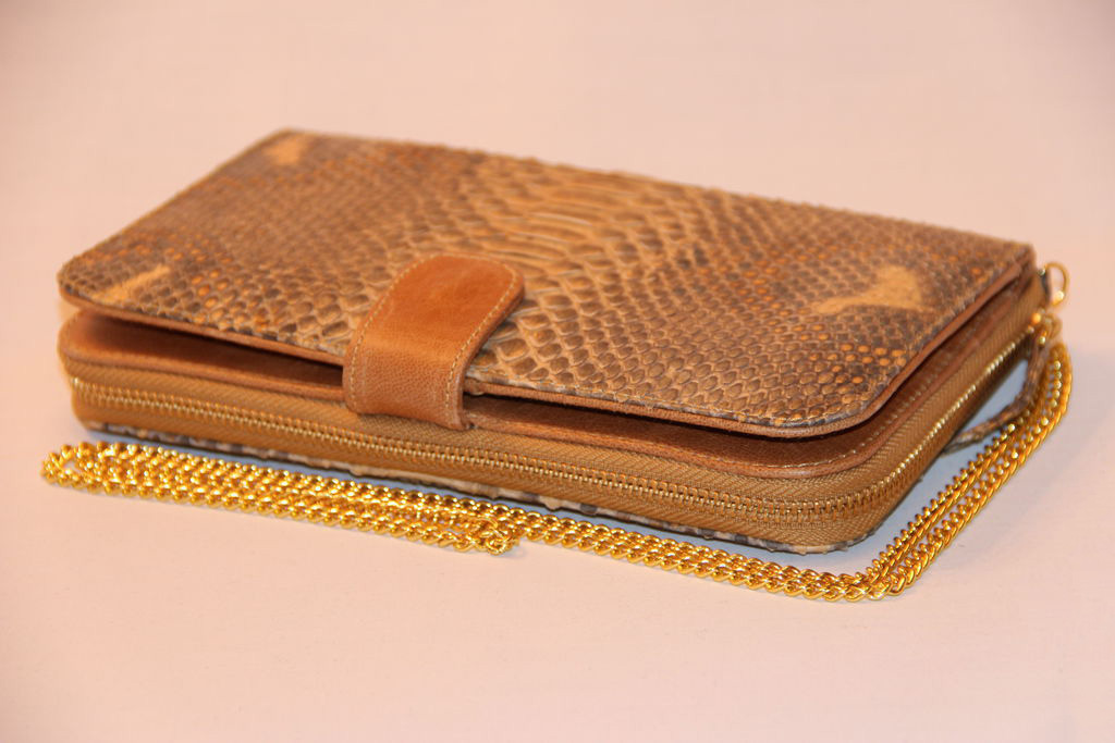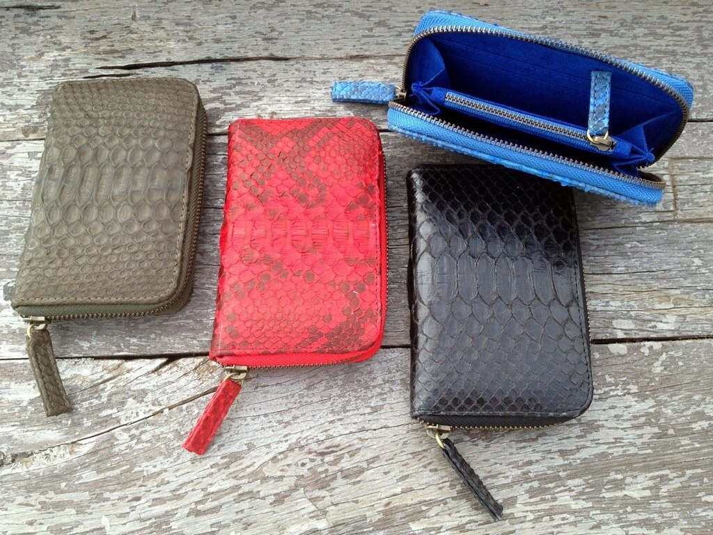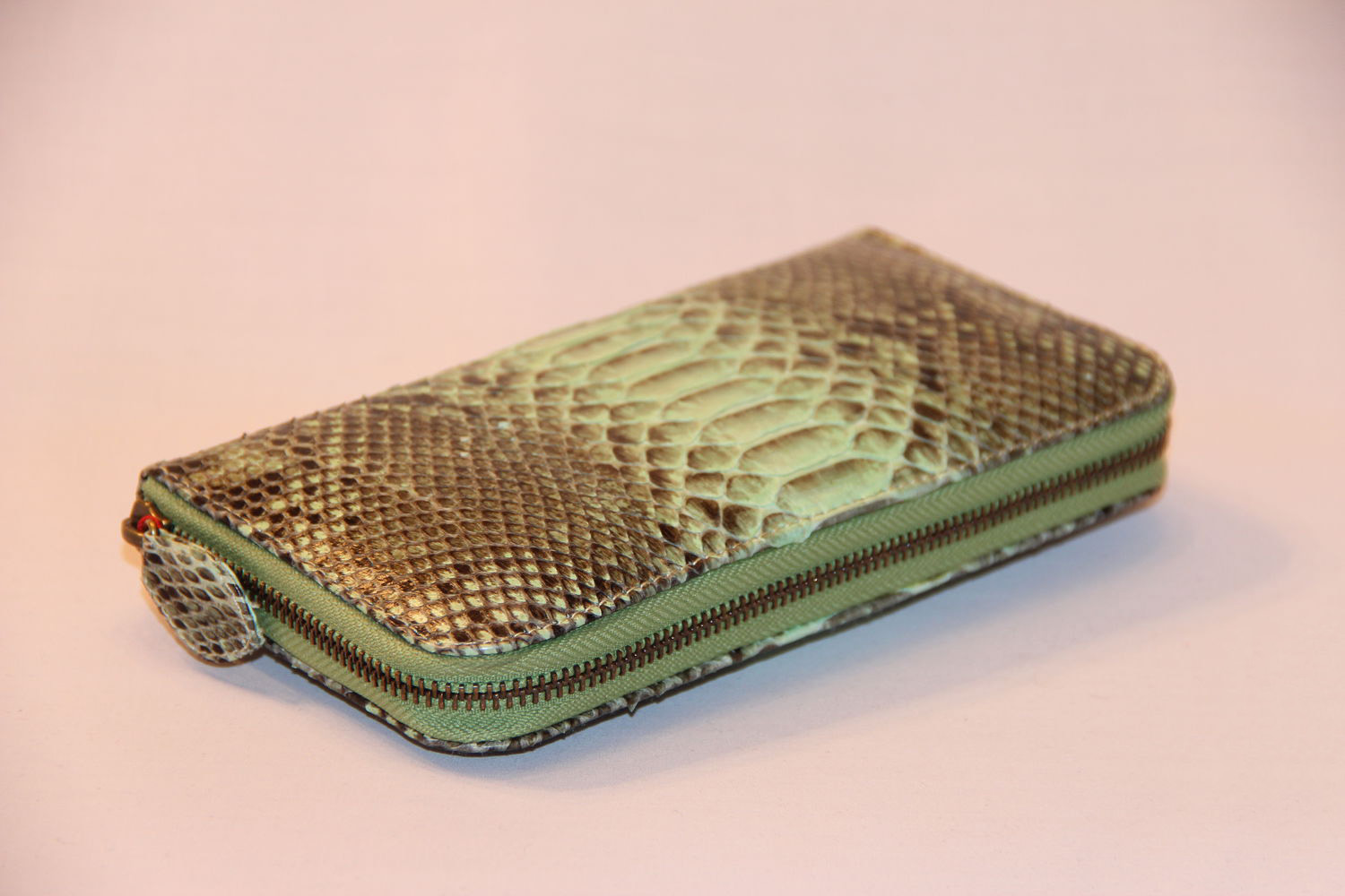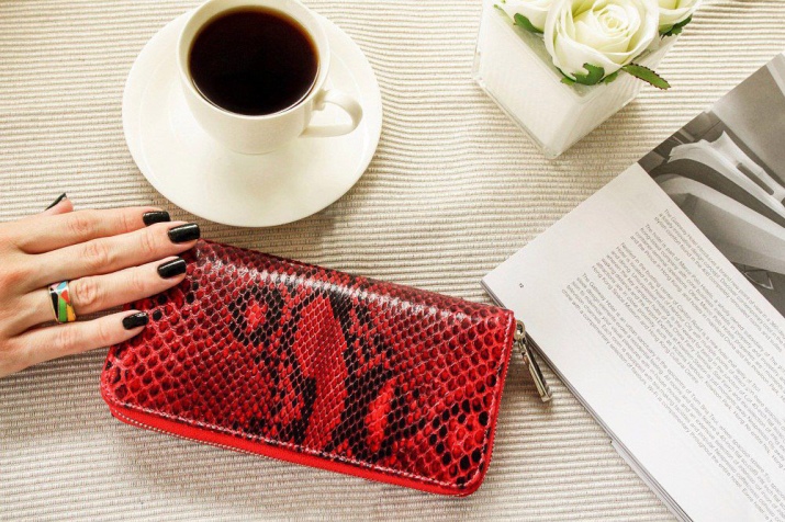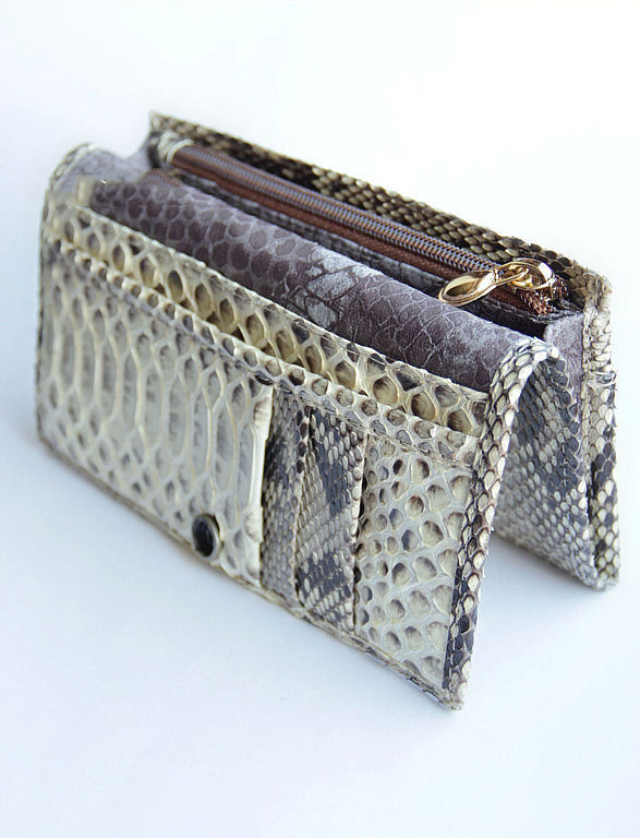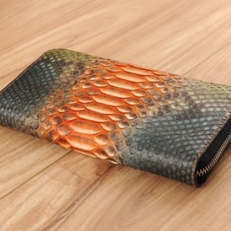 For the manufacture of purses and wallets used skin of various reptiles, but it is the python skin is particularly popular.