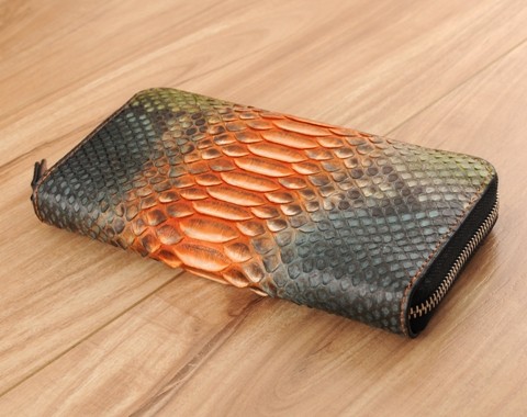 Modern technologies allow dyeing things made from snake skin in all sorts of colors. Python skin is well exposed to dyes, acquiring a rich color.