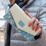 All the same components have a folding wallet - organizer, which can be made of different materials, depending on which changes its internal appearance. Soft leather, suede or fabric option in addition to the compartments for money and cards also has a special place for the handle.