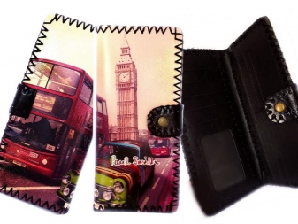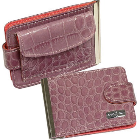 A clasp with a button can also have a leather money clip, which from the outside looks like a regular wallet, but instead of the usual compartment for bills, it has a metal pin. The clamp can be equipped with a compartment for coins and plastic cards.