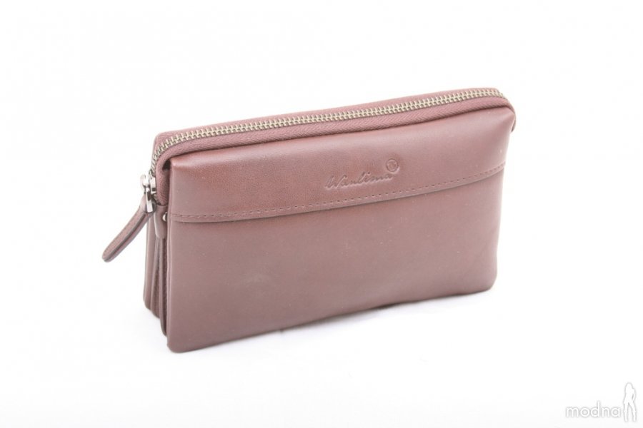 A purse of this type is a rectangular model, which can also be foldable, with three or four compartments, which is quite easily confused with a purse. A distinctive feature is the additional handle, thanks to which you can carry a wallet, wearing on your wrist.