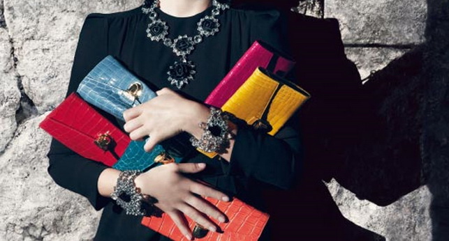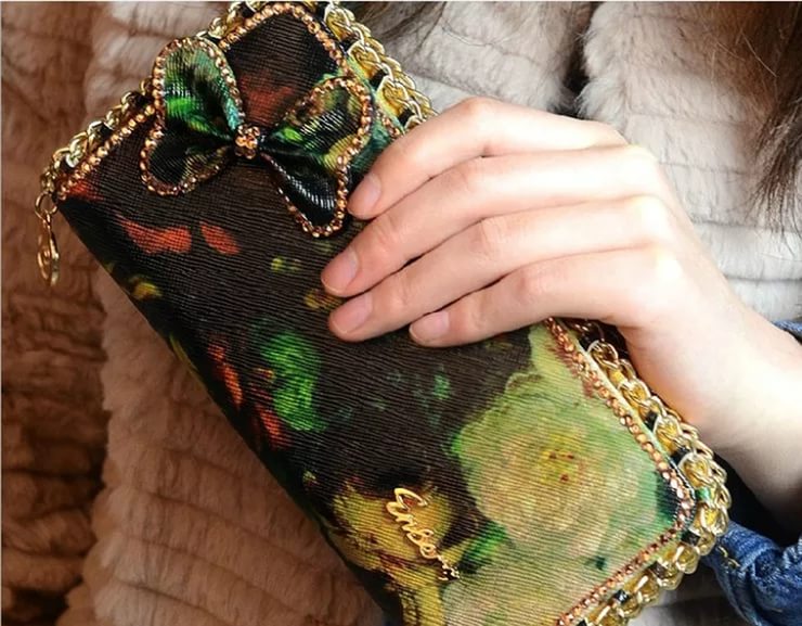 The purses of violet and turquoise hues look very unusual, because they are bright and delicate at the same time. Fascinating shades will be very beneficial to combine with an oriental print, and a purse of such colors will become a subject of luxury and envy of those around.