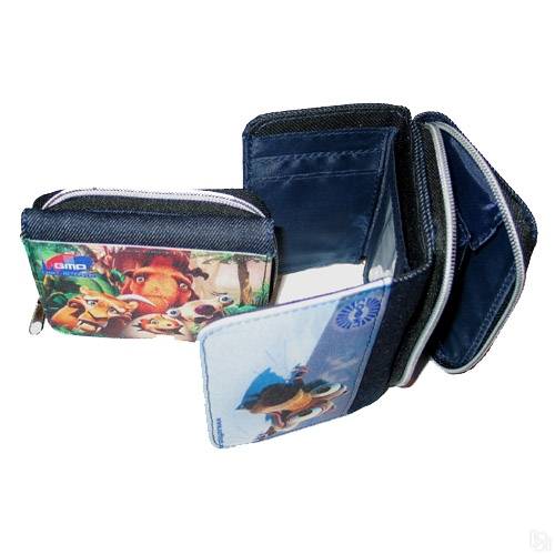 Denim wallets are quite common; they are no less durable than canvas. Denim wallet can be a classic blue shade, and can be painted in any other color or decorated with a print.