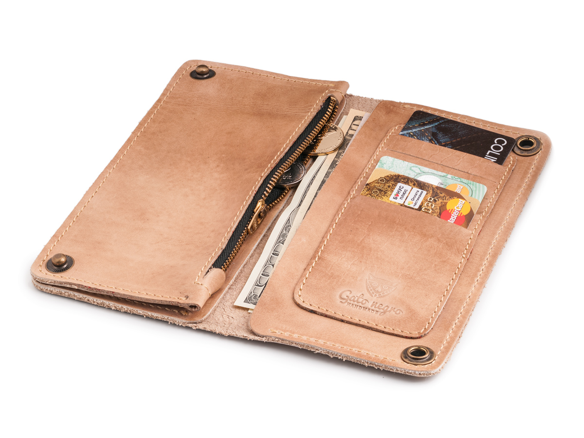 The classic wallet is equipped with compartments for plastic cards, for notes and coins, and for documents. There is nothing superfluous, only all the most necessary.