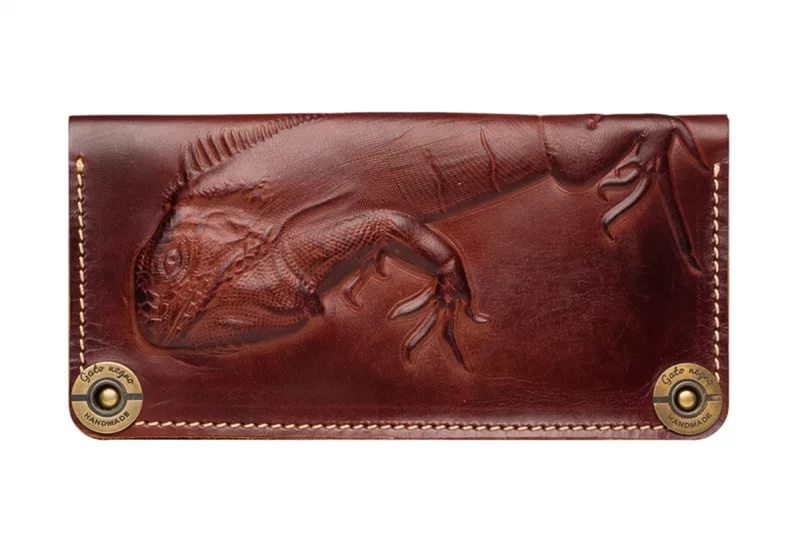 Popular prehistoric wallets with embossed on the skin, which is a picture of a dragon. Open wings, long tail and reptile skin imitation looks rather mysterious and attracts a lot of interested views.