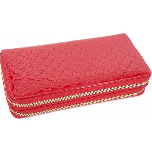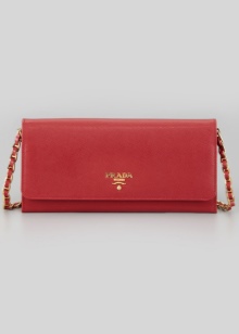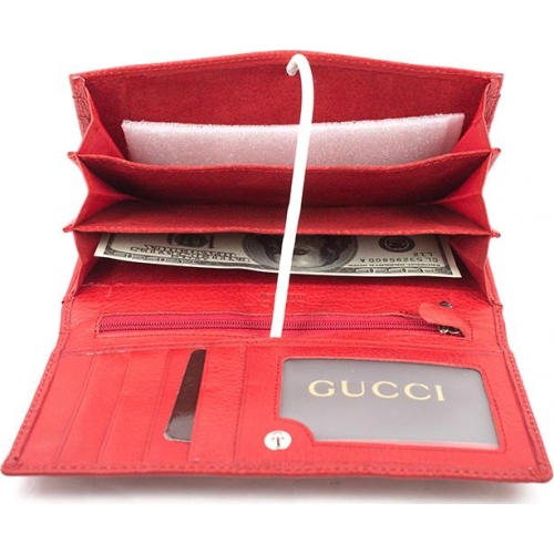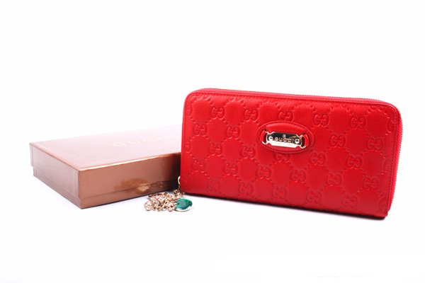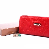 The world famous brand Gucci gives fashionable women beautiful and concise purses of red color. They can be made in a classic design or decorated with various embossing options. As a rule, many models are complemented by brand logos made of golden metal.