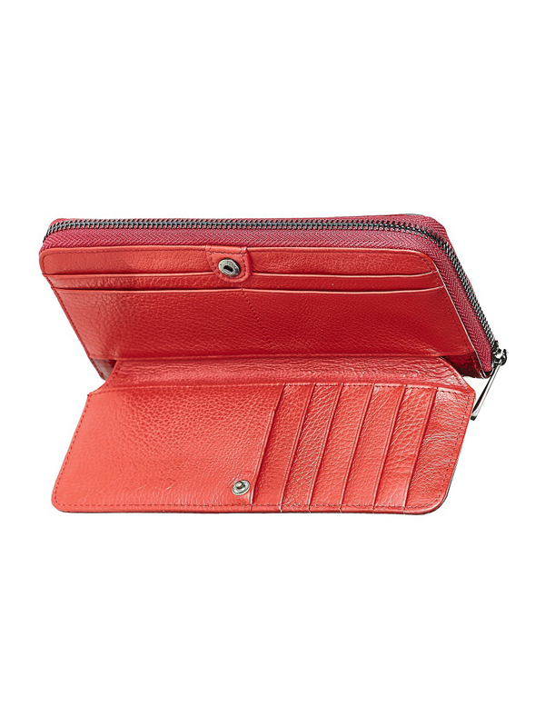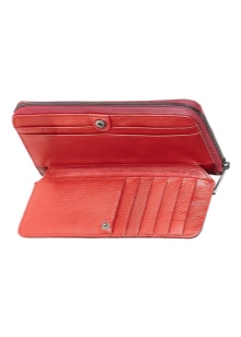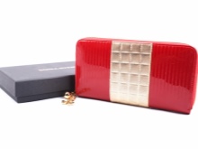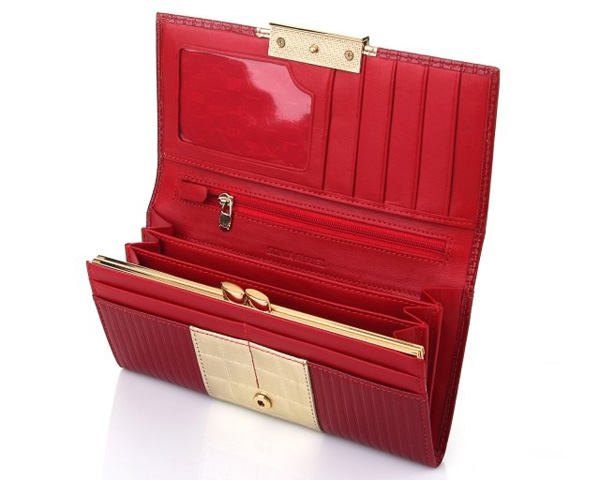 The world-famous brand produces very elegant red leather wallets of various sizes. Each lady will be able to choose for themselves a miniature model or a roomy rectangular product.
