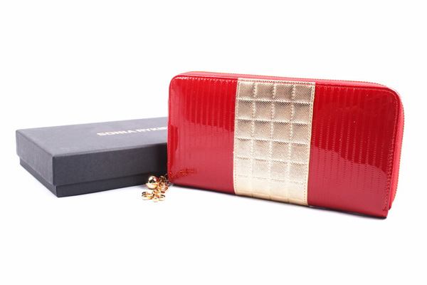 Want to buy an original and eye-catching accessory? Then you definitely need to familiarize yourself with the assortment of wallets from the company Sonia Rykiel. It is presented with elegant specimens of beautiful red color with golden inserts on the front part and metal fittings with the name of the company.