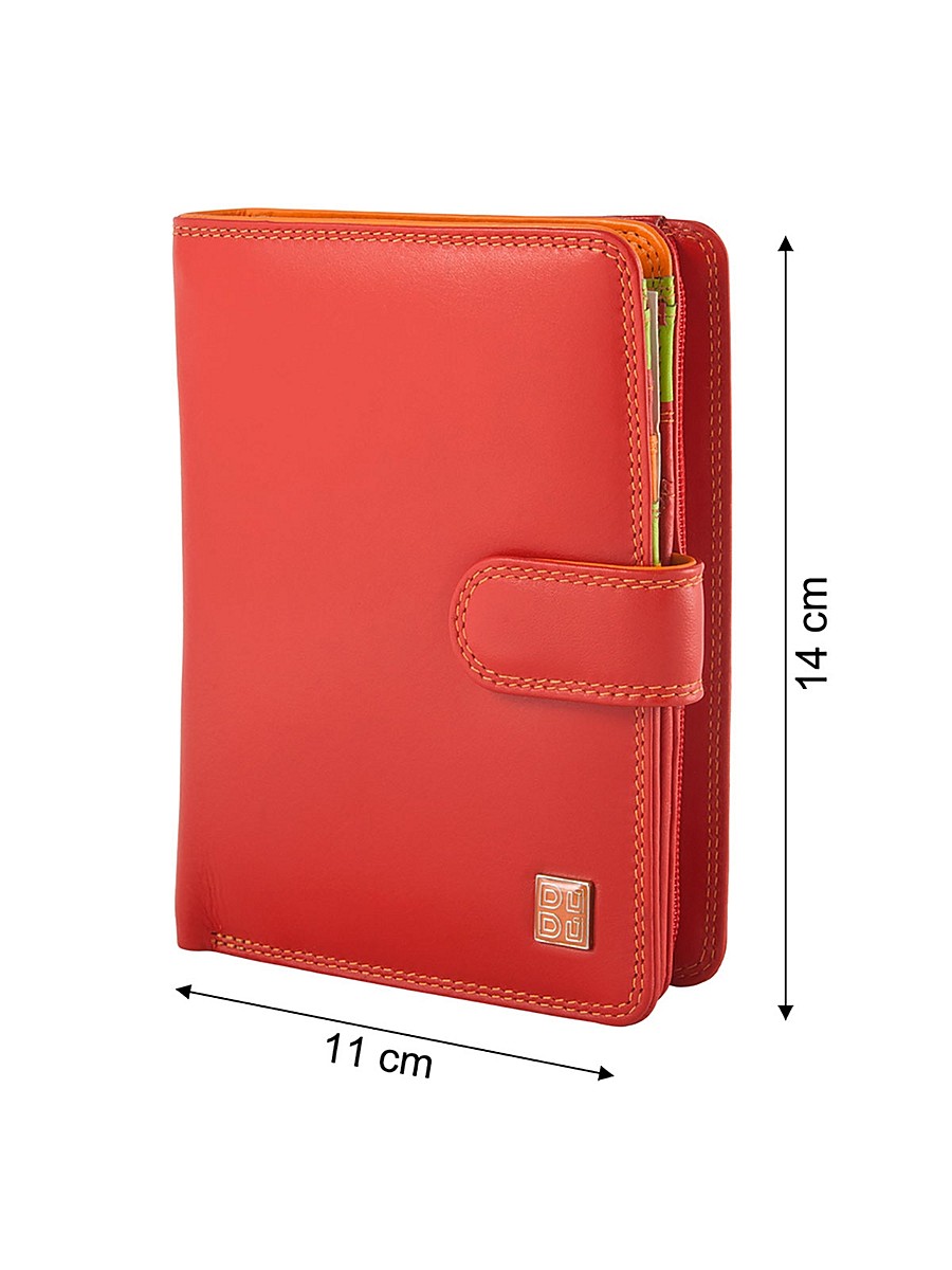 Especially popular are small products made from red matte leather with a button closure. Such convenient options will be the perfect solution for the active fashionista. They can easily fit in even the smallest women's handbag.