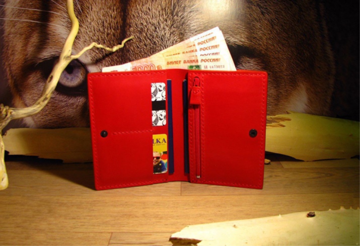It is believed that the red color is an excellent solution for processing the wallet, as it "attracts" money to itself. In addition to its ability to increase the budget, a useful accessory has a beautiful appearance, which raises the mood and pleases the eye.