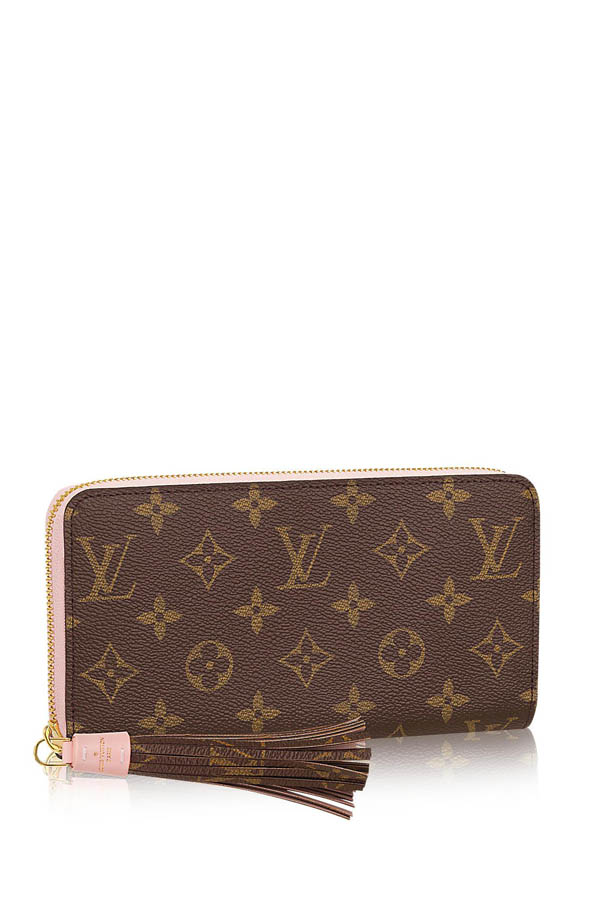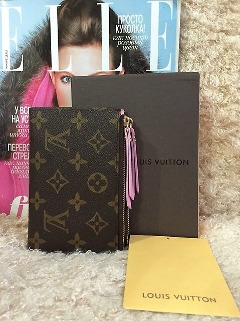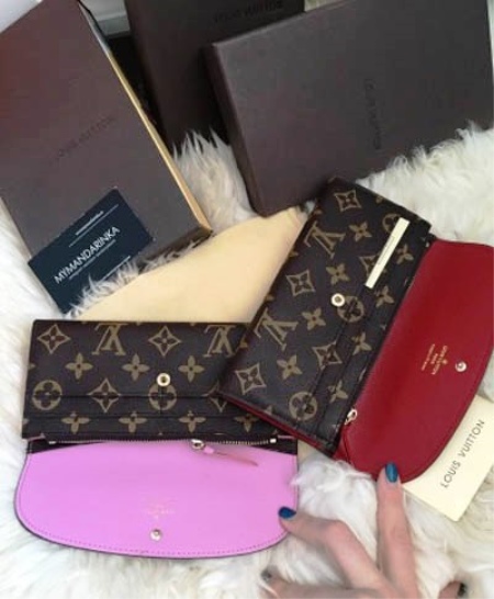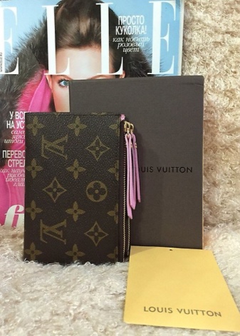 Such compact options are made of calfskin. The most popular colors of miniature wallets are: beige, soft pink, red, blue, chocolate, gray, etc. Each model is decorated with branded monogram, which is placed both on the outer and on the inner surface.