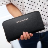 Wallets brand Michael Kors are presented in different colors. Neutral shades - black, beige, dark blue, brown will suit conservative persons who prefer classic and strict toilets in clothes.