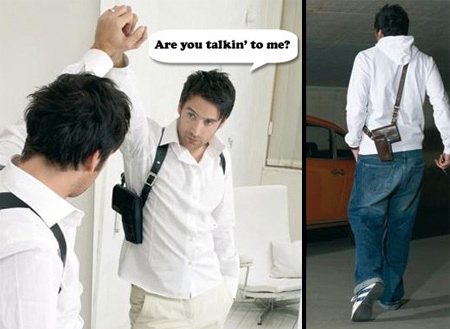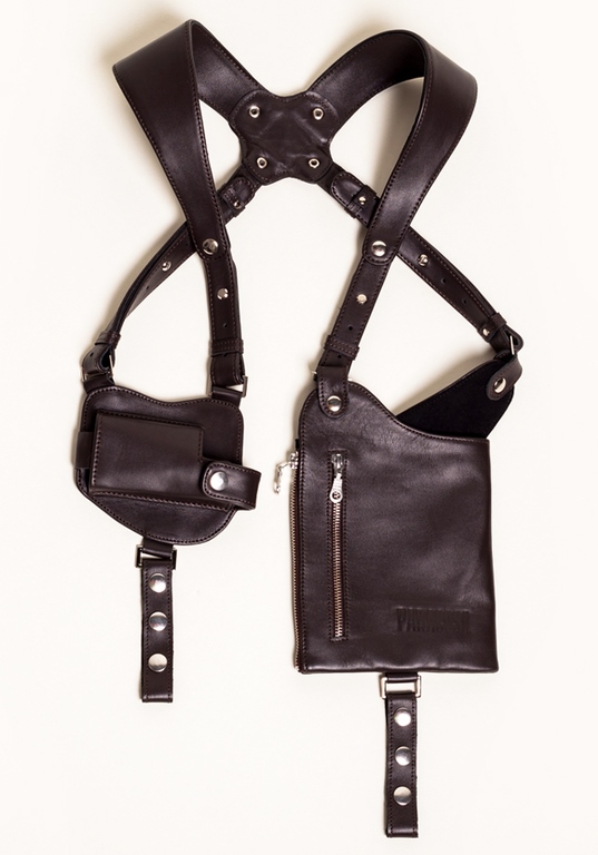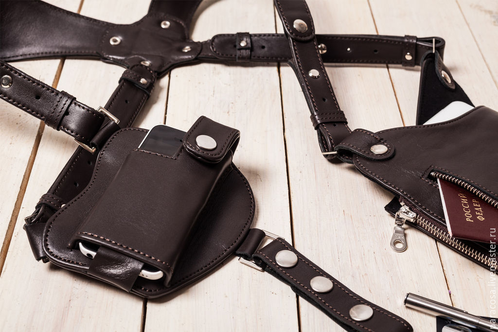 These wallets are made of leather in the form of a real holster. The model is equipped with a shoulder strap, through which the wallet is worn like a regular holster. This accessory will not get lost in the crowd.