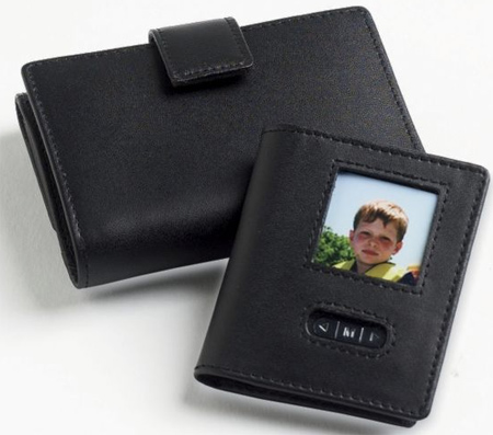 The front side of the wallet has a built-in digital photo frame. This model allows you to carry photos of loved ones always with you and contains about 60 photos.