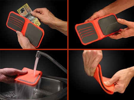 A model that is not afraid of water is represented by the Dosh brand. In addition to the useful properties of protection against moisture, this wallet has a very stylish design.