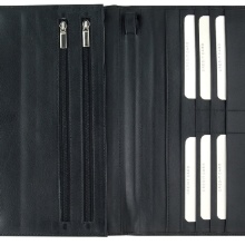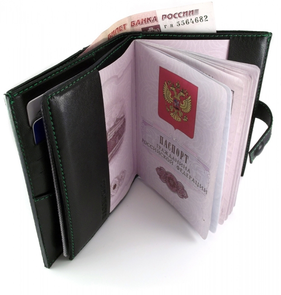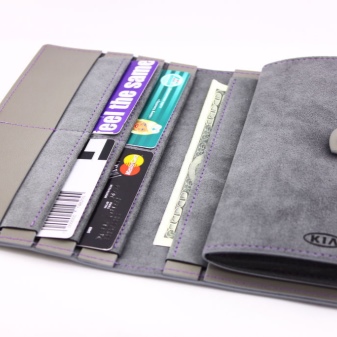 This type of accessory is compact and convenient. In most models there is a block for documents inside, which is presented as a set of separate transparent plastic pockets. In low-cost models, this unit is sewn, and in more advanced covers it can be replaced. Inside the cover of the purse should be a compartment for bills, and maybe even a pocket for coins.