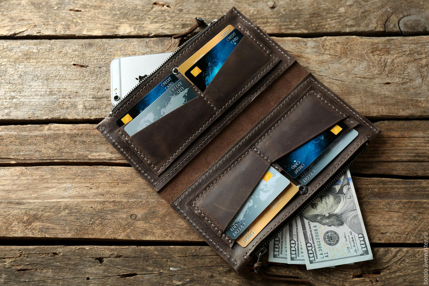 Wallets, which have a branch for the phone, are very popular. These covers have a compartment for a mobile phone, documents, or even bills. Such purses do not differ large capacity, but all the important things will always be at hand.