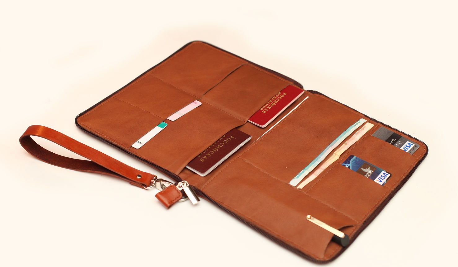 An interesting option is the organizer-wallet-wallet for travel. It is quite roomy, comfortable, has many compartments, a convenient fastening system. This accessory allows you to keep all important documents and things in one place.
