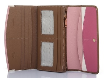 In addition to more restrained models in the Prada collections, you can find a female accessory with stylish prints. Favorite motifs for decorating branded gizmos - floral patterns and geometric abstraction. This wallet is perfect for the casual free style of young girls, while the classic monochrome wallets will complement the business style well.