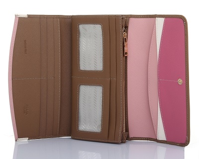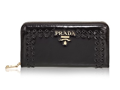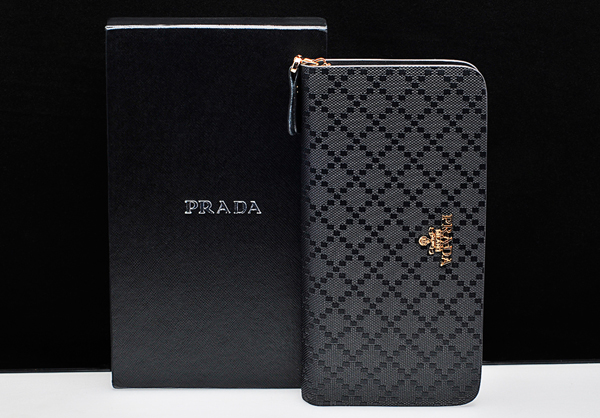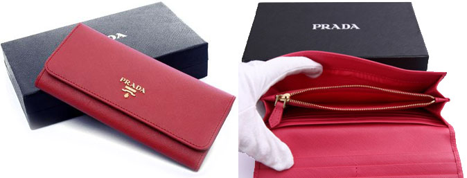 - Prada's classic and favorite colors — red and black — were chosen by designers to create wallets with a double-fold mechanism.