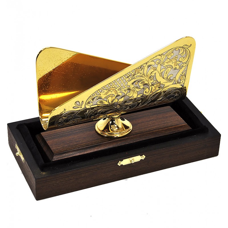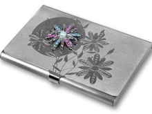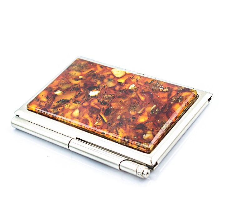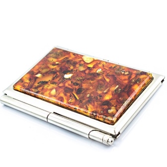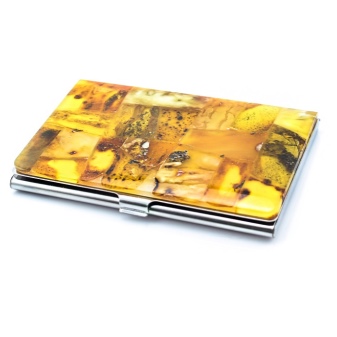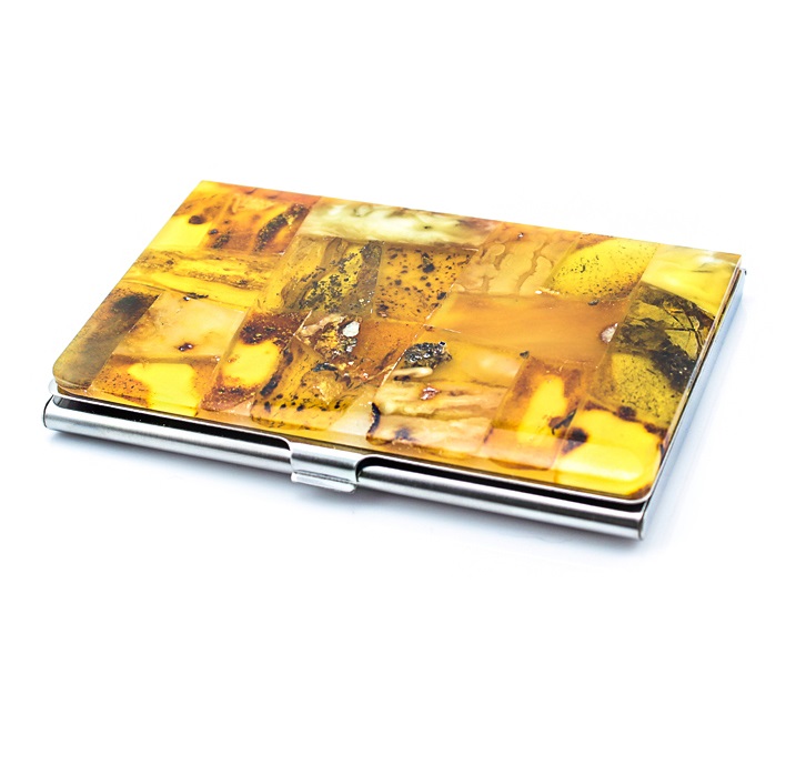 As a gift for a lady, a personalized business card holder with a stone is ideal (amber is especially popular in this regard).