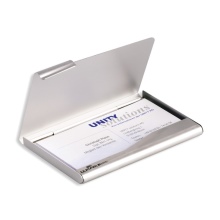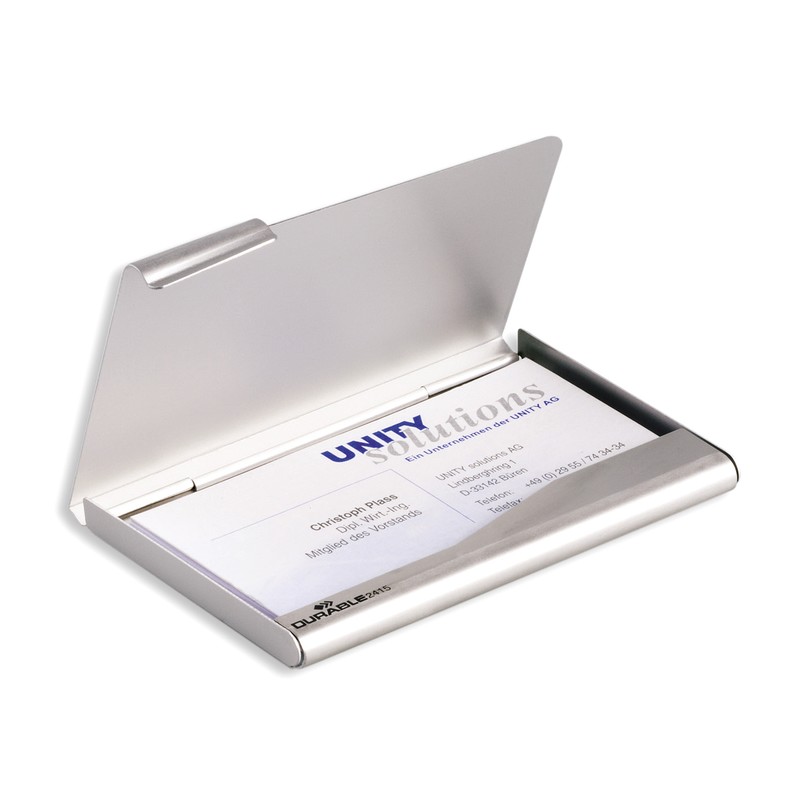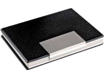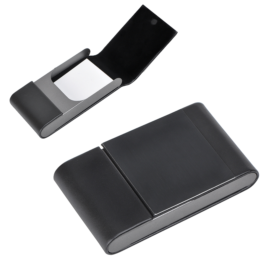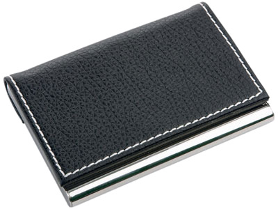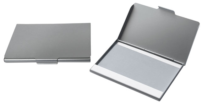- Business card case in the form of a rectangular metal or plastic box to store your own business cards.