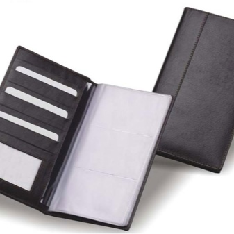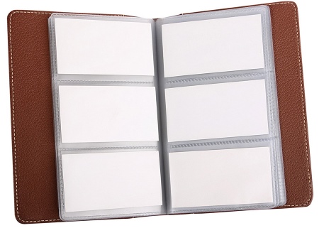The card holder is an analog purse in the form of the small book in which store various business cards. Inside, like the pages, the so-called plastic holders - card holders are attached.